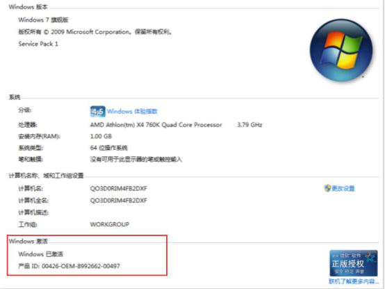 5.最后,电脑重启了,我们可以从电脑设置中,看到win 7系统已经被windows loader激活工具给激活了。
