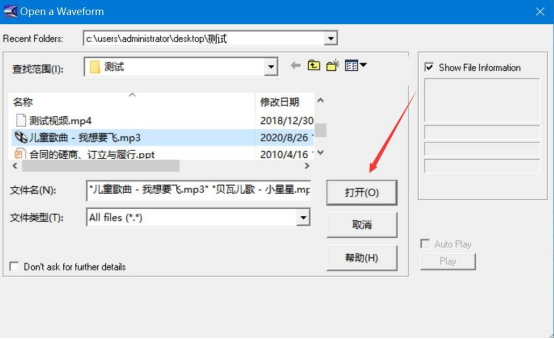 2.然后,将需要合并的音乐片段选中,再点击“打开”按钮,将它导入cool edit pro。