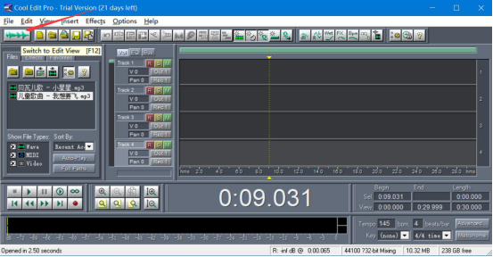 4.在cool edit pro界面中,点击左上方的“Switch to Edit View”按钮。
