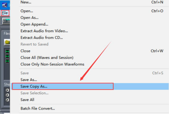 8.cool edit pro将音乐片段合并后,点击“File”菜单中的“Save Copy As”。