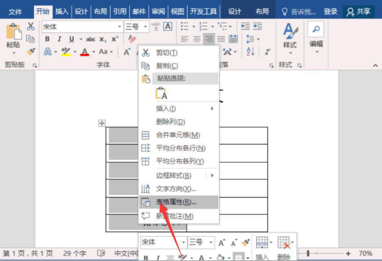 7.接着,我们将第2列单元格全选,右键菜单中点击“表格属性”。