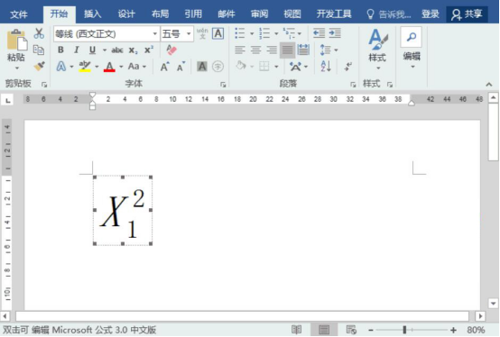 6.公式的大小调整完成后,我们双击该公式,它便会再次进入可编辑的状态,我们还可以利用word公式编辑器3.0中的符号、结构对公式进行修改。