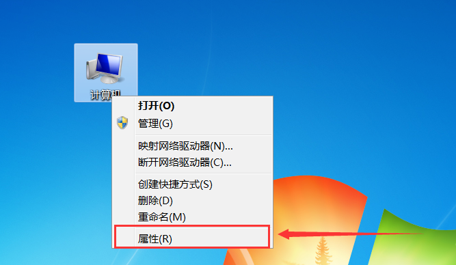1.在电脑桌面上右击“计算机”图标,来打开右键菜单。