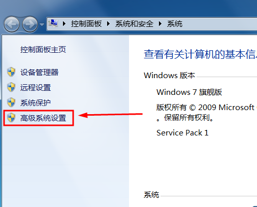 3.在打开的窗口上,点击左上方列表中的“高级系统设置”选项。