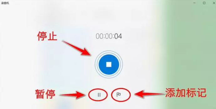 请确保已连接麦克风,启动录音机,点击屏幕中的蓝色按钮,即可进行录音;你也可以点按【Ctrl+R】快捷键,开始录制声音。