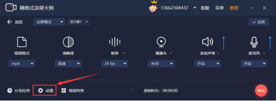 3.如果我们还有更多个性化的需求,就点击嗨格式录屏大师界面左下方的“设置”按钮。