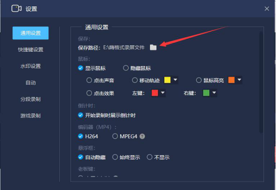 4.进入嗨格式录屏大师的设置界面后,先切换至“通用设置”页面。注意它的使用技巧,重新设置保存路径,避免空间不足导致录屏出现错误。