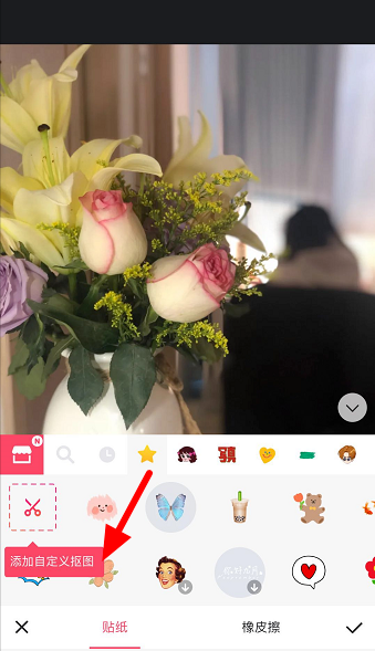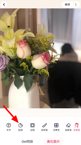 图片导入成功,即可进行美化操作,例如选择【贴纸】,选择自己喜欢的贴纸,