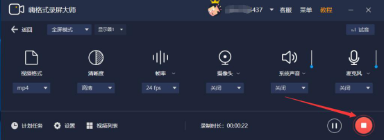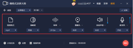 2.进入嗨格式录屏大师的参数设置界面。我们设置根据录制讲课的需要,设置视频输出的格式、清晰度、帧率、声音等参数。