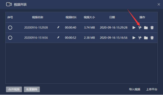 7.最后,我们可以看到自己录制的讲课视频已经被成功保存起来。我们在视频列表的该视频处,点击“编辑”按钮,进入编辑界面,可以为讲课视频批量添加字幕。