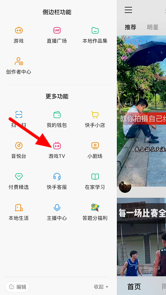 进入以下界面,展开侧边栏功能,点击【游戏TV】,