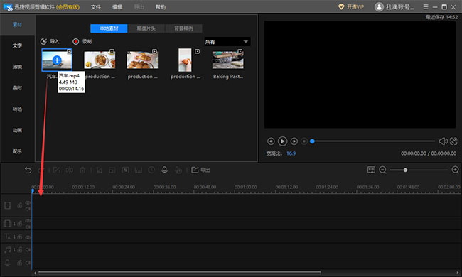 打开迅捷视频剪辑软件,进入界面,依次导入视频文件和背景音乐,你可以直接将素材拖拽至指定区域,然后将素材添加至视频轨道,
