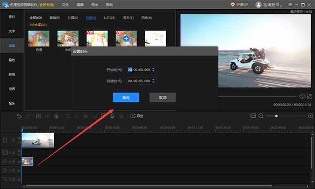 抖动特效在视频中是有展现时间的,选中轨道内的模板,点击【时长】,弹出【设置时长】窗口,即可修改抖动特效的开始时间和持续时间;需要注意的是,持续时间不应过长,否则影响视频观看感,