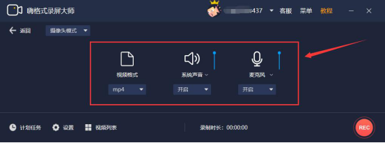 2.然后,进入嗨格式录屏大师的模式参数设置,设置视频格式、系统声音、麦克风。