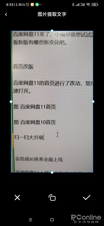 百度网盘 11 对扫一扫功能进行了大升级,在新版中,扫一扫功能可不限于扫描二维码,它还能进行文字识别与文档识别操作。