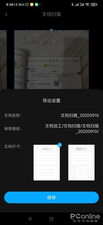 “文档扫描”功能则是让用户可以连续拍摄文档,然后百度网盘自动的帮用户所拍摄的照片生产 PDF 格式的文档,生成文档时用户可选择 A4 尺寸或原始尺寸,不过这个功能的导出文档貌似是会员才能用。导出后的文档保存到百度网盘的 “文档加工”目录下,不过遗憾的是拍摄的文档并没有自动裁边自动优化等功能,而是原图输出。