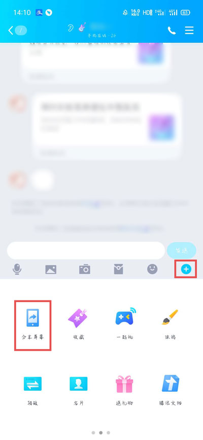 1、打开手机QQ,点击需要我来教你屏幕的QQ联系人,进入聊天页面,点击右下角的【+】按钮;