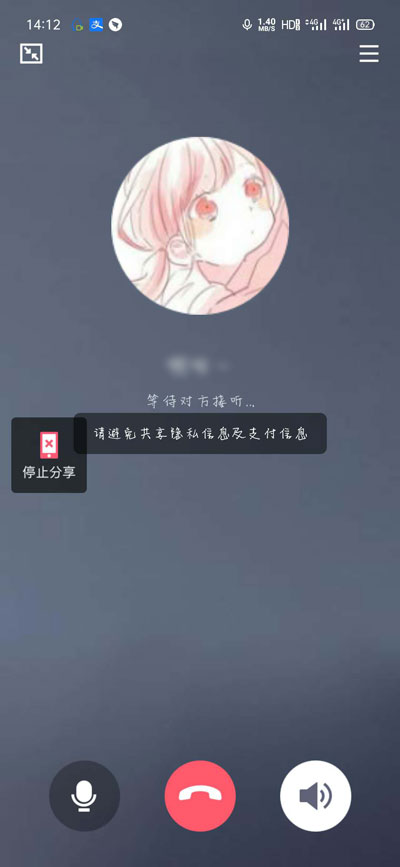 3、然后就会进入我来教你屏幕通话,等待对方接通即可演示屏幕和语音通话;