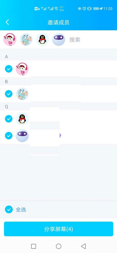 4、如果是群聊使用,需要选择进入屏幕我来教你通话内的成员,点击【我来教你屏幕】;