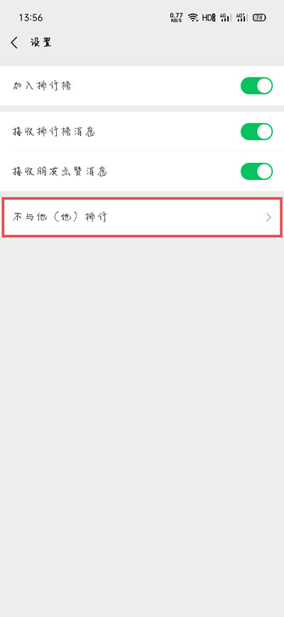 4、选择【不与他(她)排行】功能;