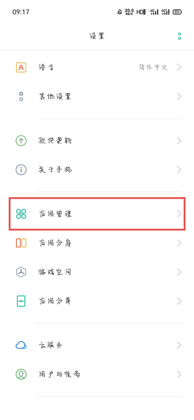 1、下面以ColorOS 7及以上版本为例,打开手机中的【设置】,下滑到最后选择【应用管理】;