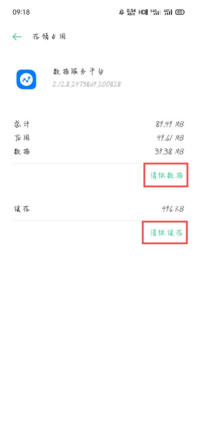 ColorOS 7及之后的版本:进入 「设置 > 应用管理 > 应用列表 > 右上角设置显示系统程序 > 数据服务平台」点击清除即可;