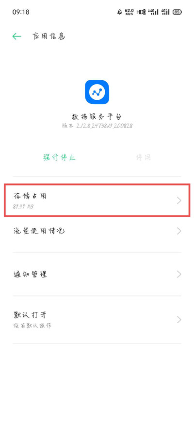ColorOS 7及之后的版本:进入 「设置 > 应用管理 > 应用列表 > 右上角设置显示系统程序 > 数据服务平台」点击清除即可;