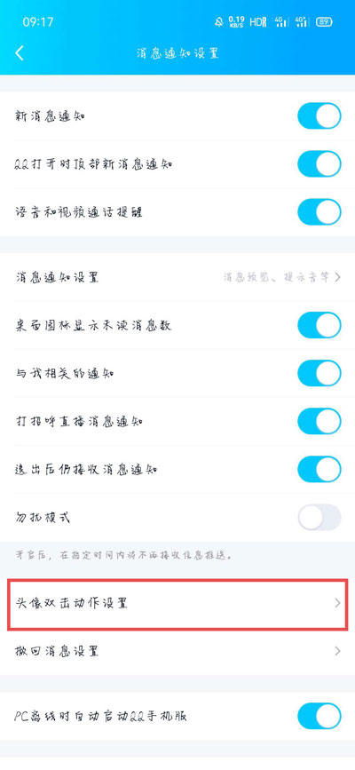 4、然后下滑找到【双击头像动作设置】一项,进入设置双击头像动作;