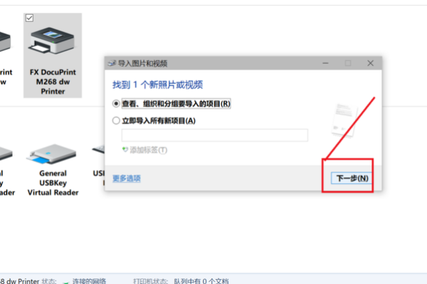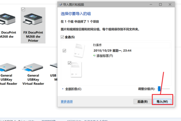 弹出【导入图片和视频】窗口,点击导入,勾选查看,然后进行下一步,操作完成,你就可以看到被扫描的文件已经保存在电脑中。