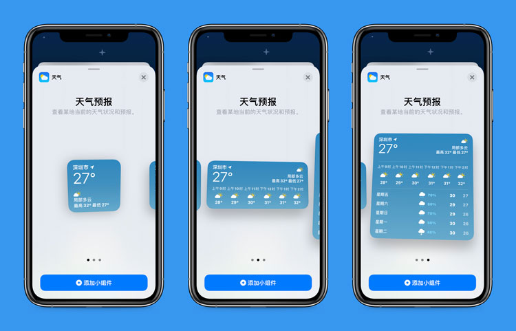 • 小、中、大三种尺寸的小组件,可让您挑选要显示的信息量