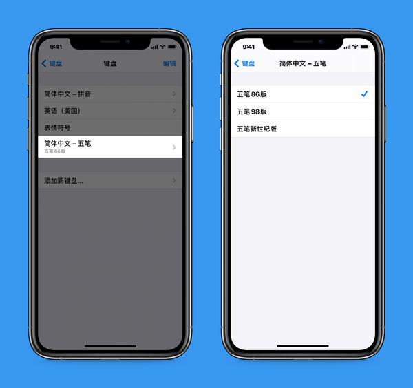 • 简体中文新增五笔输入法