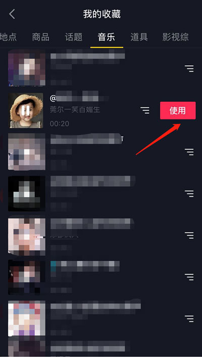 5、如果需要使用该音乐,选择音乐,点击之后选择【使用】;