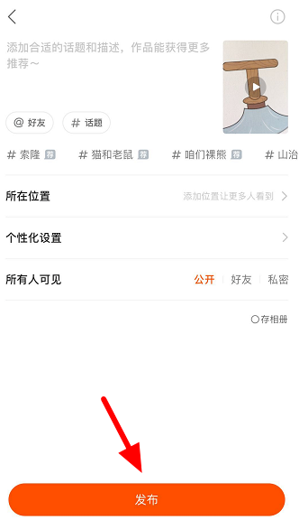 短视频剪辑完成,最后进行发布即可。