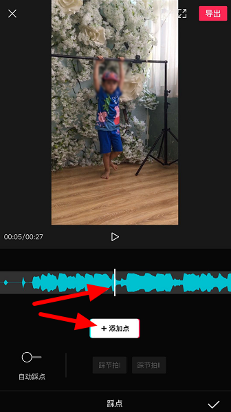 将时间线移动到目标位置,点击【添加点】,当然了,你也可以使用自动踩点功能,