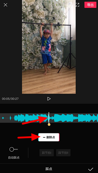 如果想要删除踩点,将时间线移动到踩点的位置,即对准“黄点”处,然后点击【删除点】即可。