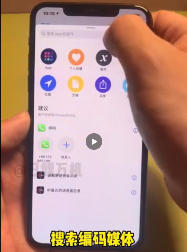 8、在点击编码媒体后,在快捷指令界面点击打开仅音频按钮;