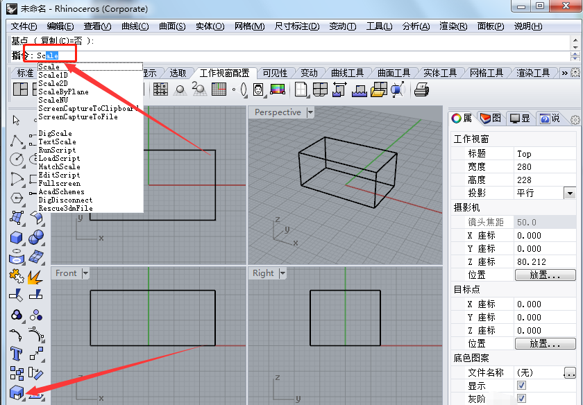如何使用犀牛软件的缩放命令?