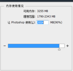 3、由于PS的运行对内存依赖很大,因此增加PS内存使用可以有效提高PS运行性能,减少卡顿。一般系统默认PS允许使用内存为60%,这里拖动滑块,将其调整至80—90。