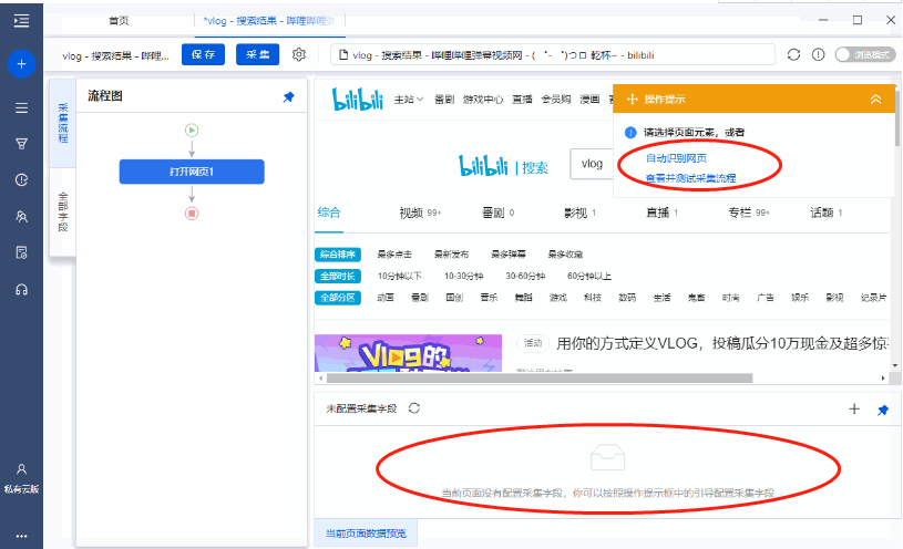 2、八爪鱼采集器自动打开B站网页,一般情况下会自动识别网页数据,如果最后得到的数据结果不是用户需要的,可以点击【取消】,然后自行配置采集流程,