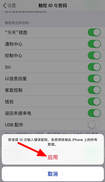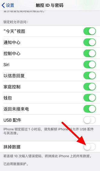 找到【抹掉数据】,点击启用这一功能,