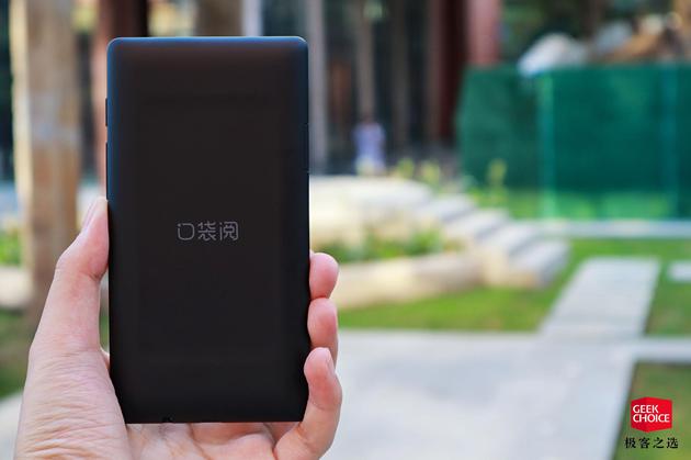 和绝大多数阅读器一样,口袋阅采用了通体黑色的塑料机身,后盖上印着‘口袋阅’的汉字 LOGO,机身边缘也有着收边的处理,只是过渡有点生硬,不过对于阅读器来说就不强求那么多了。