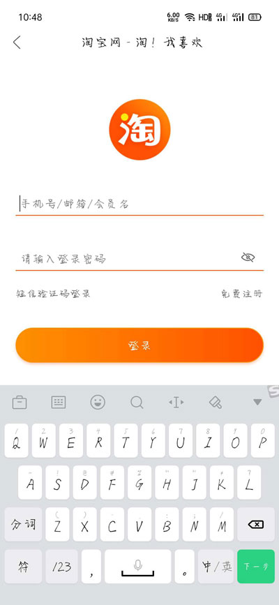 3、接着登录自己的淘宝账号,注意该账号需要和闲鱼登录的账号保持一致;