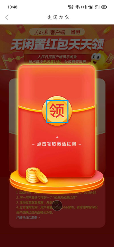 闲鱼无闲置红包怎么领取?在最近,人民日报app和闲鱼app推出联合活动,打开人民日报可以领取闲鱼无闲置红包,那具体该怎么领取呢,在哪里领取闲鱼无闲置红包,下面就和小编一起来看看闲鱼无闲置红包领取方法吧!