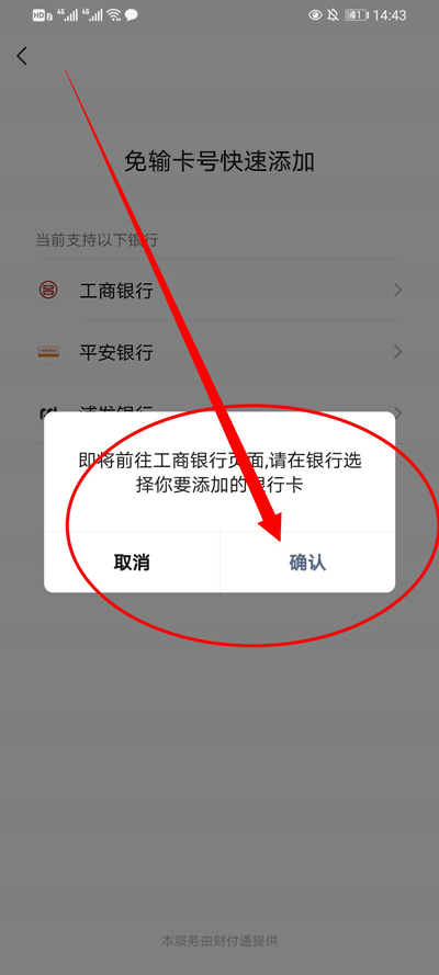 4、人脸识别通过后,确认前往添加银行卡。