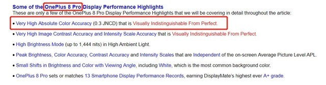 一加8 Pro JNCD均值同样为0.3(图源Display Mate官网)