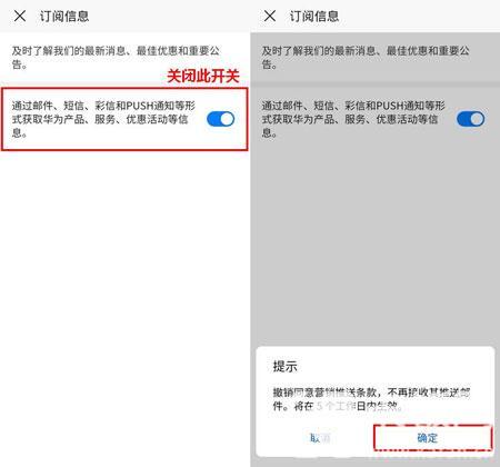 打开华为手机,进入手机的【设置】中,点击上方的【账户】——【隐私中心】——【订阅信息】——【通过邮件、短信、彩信和……】——【确定】即可。