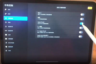 4、最后在【功能手势】界面中点击关闭【apple pencll】即可完成关闭,将不再对称作画。