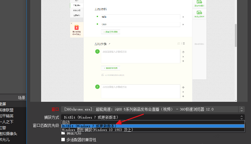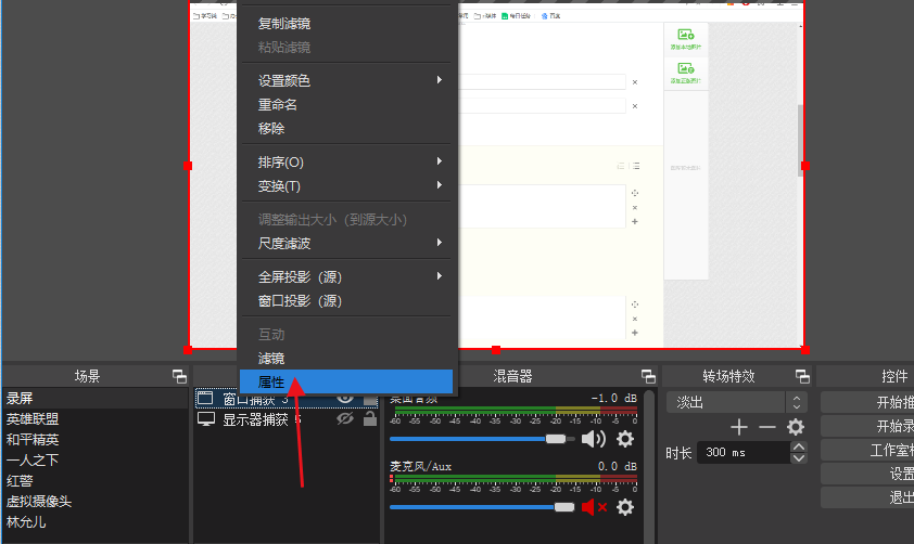 当然了,如果你选择的来源是“窗口捕获”,需要进行同样设置,鼠标右击“窗口捕获”,选择属性,