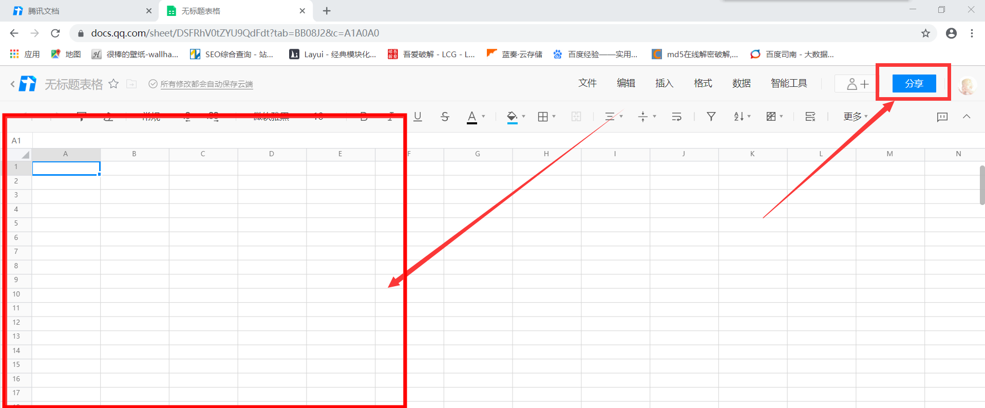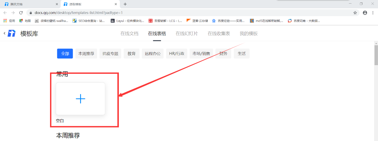 这里选择点击“在线表格”,跳转页面,点击“+”,创建表格,当然了,你可以直接套用模板,