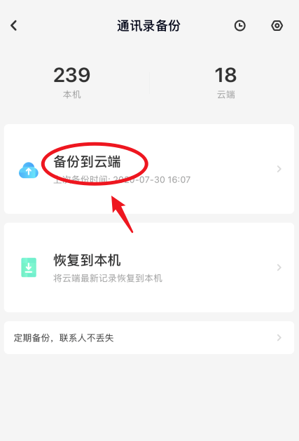 跳转至以下界面,点击上方的“备份到云端”选项,